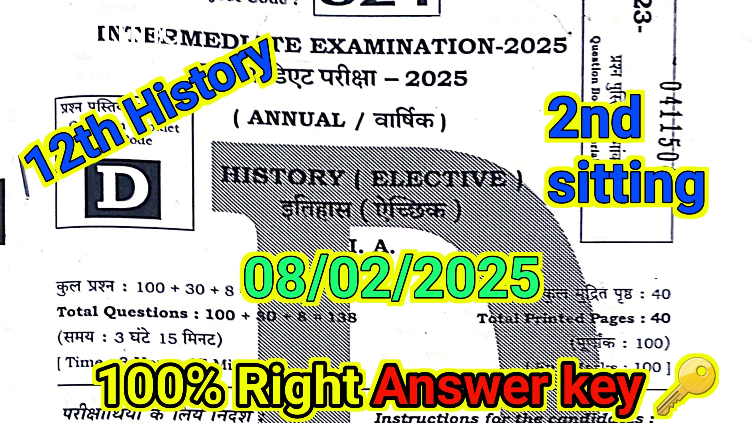 12th Bihar Board History ka Answer key 2025 | Class 12th History Answer key 2025 Bihar Board