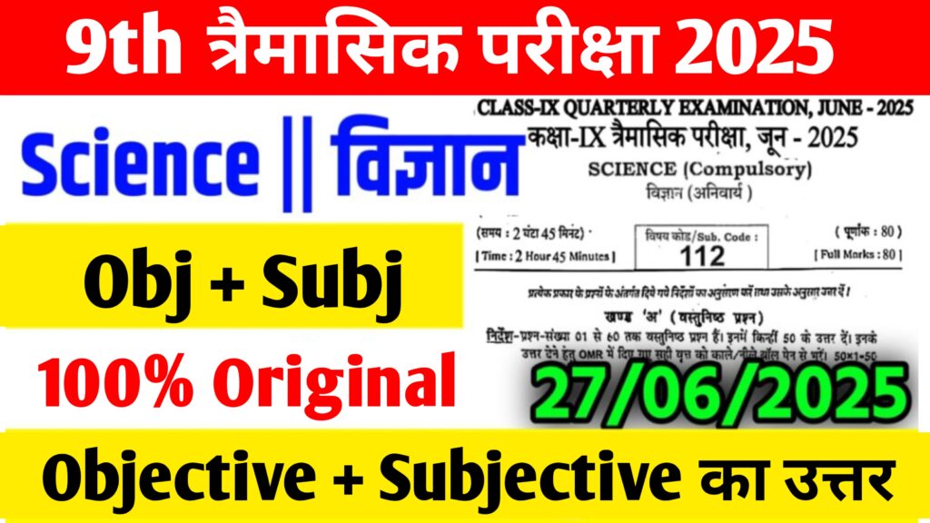 जय हिंद साथियों, आज हम इस पोस्ट में आपको बताने वाले है कि कक्षा 9वीं 27 जून त्रैमासिक परीक्षा का ऑरिजनल क्वेश्चन पेपर का Objective & Subjective का Answer आपको इस आर्टिकल में बताया गया है। तो आप इस पोस्ट को ध्यान पूर्वक अंतिम तक पढ़े।